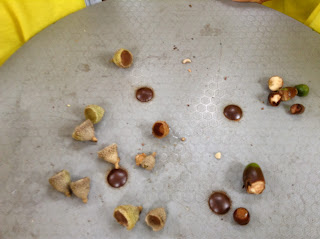 Estamos trabajando el otoño y que mejor que observar en directo el campo. Sus colores, verdes, amarillos, anaranjados... y frutos,setas, piñas y bellotas.
